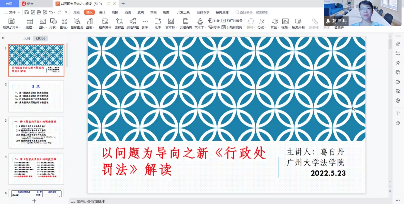 法律系于腾讯会议举办线上“法路历程”系列讲座第二十期。本期讲座邀请了广州大学法学院副教授、法学博士、硕士生导师葛自丹老师,为我们讲授“以问题为导向之新《行政处罚法》解读。”本期讲座参与人数达五百余人。