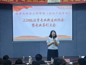 紧接着,法律系主任罗兆婧老师为2024级法学新生阐述了专业的核心理念、课程体系及其特色,介绍了丰富的课外实践与学术交流平台。谈及学术成果时,罗老师引用了具体数据与案例,客观展示了往届学生在法考考研及法学专业竞赛中的卓越表现,以此激励新生们树立专业自信,明确奋斗目标。最后,罗老师寄语新生们要珍惜大学四年的宝贵时光,将个人的成长与法学专业的发展紧密结合,通过不断的学习与实践,夯实专业基础,努力成为具有深厚法学素养、卓越实践能力的法学人才。