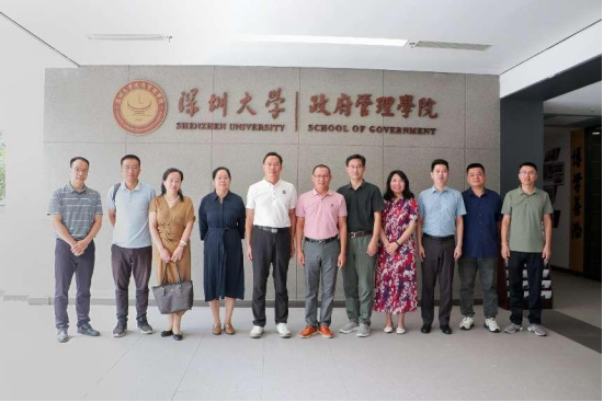 党委书记杜应发、院长郑玉敏、副院长沈亚萍、黄俊辉、王海洋、社工系主任成伟等一行人到深圳大学政府管理学院交流座谈。深圳大学政府管理学院党委书记何燕辉、副院长谷志军、黄斌欢、社会工作学科带头人徐道稳等参加座谈。