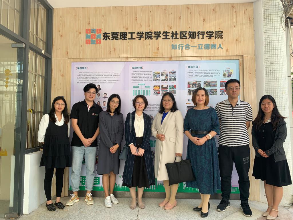知行学院的学校社会工作服务点,听取了驻校社工的工作汇报,并就学校社会工作的购买方式、服务模式及工作方法与社工们进行了深入的交流。