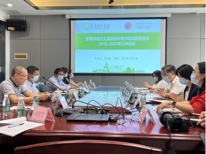 院长郑玉敏对市立法基地近年来参与东莞市重要立法的情况做了详细汇报:自2015年至今,立法基地全程参与了多项东莞市地方性法规、地方政府规章的制修订工作,深度参与多项立法项目调研论证活动和立法专项课题研究,全程为立法工作提供日常咨询意见服务;此外,立法基地还在培育立法后备人才、提升立法基地交流与服务能力等方面做了大量的工作。
