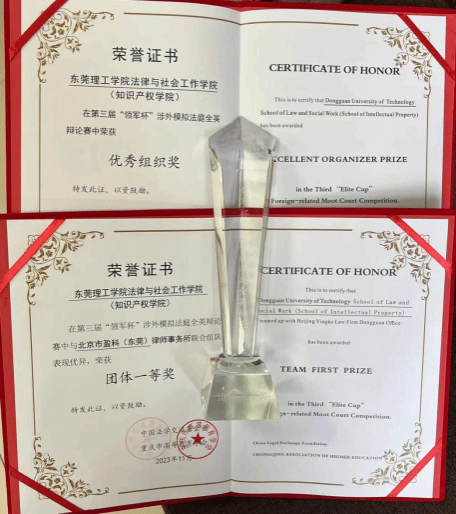 学子与北京市盈科(东莞)律师事务所盈德团队合作组队,第一次参加由中国法学交流基金会和重庆市高等教育学会主办、西南政法大学国际法学院承办第三届“领军杯”涉外模拟法庭全英辩论赛,荣获“领军杯”涉外模拟法庭全英辩论赛团体一等奖。肉漫画