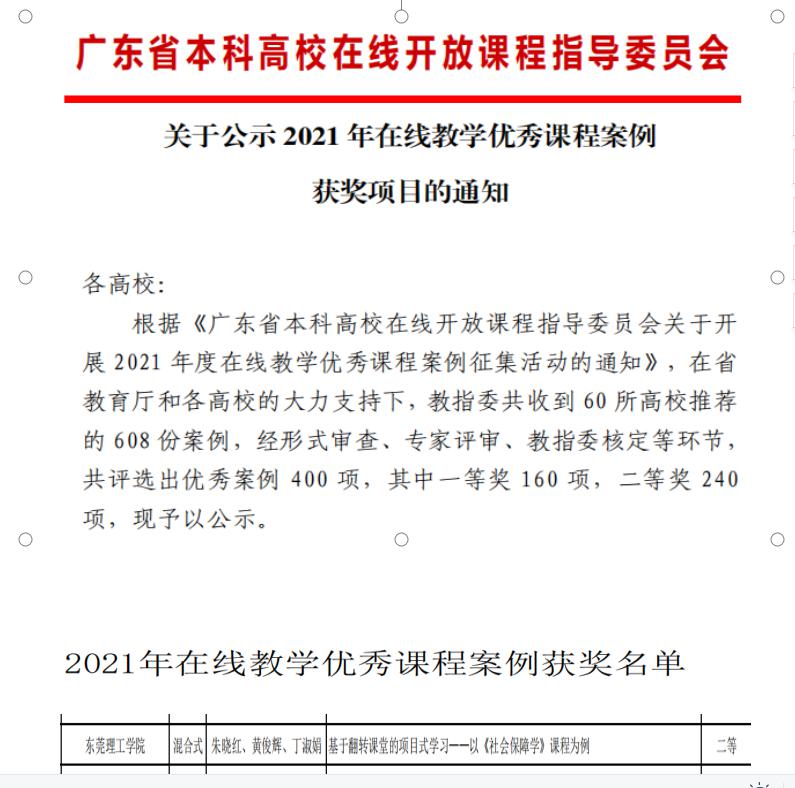 由朱晓红、黄俊辉、丁淑娟三位老师申报的《基于翻转课堂的项目式学习——以<社会保障学>课程为例》荣获二等奖。