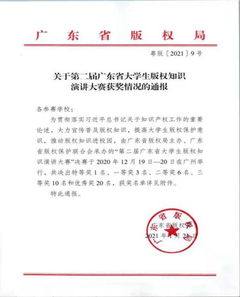 近日,在2020年度广东省大学生版权知识演讲大赛中,我校肉漫画